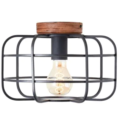 Investissez dans une solution à long terme, de heures en choisissant le Brilliant Gwen Plafonnier Métal Bois Noir | 300mm - Convient pour 1x E27.