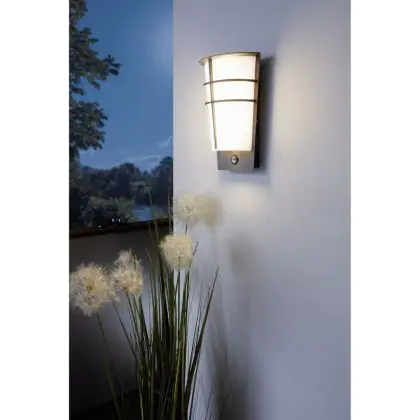 Eglo Applique Murale Breganzo 1 Acier Argent 2W 230lm - 830 Blanc Chaud | IP44 - Détecteur de Mouvement et de Lumière