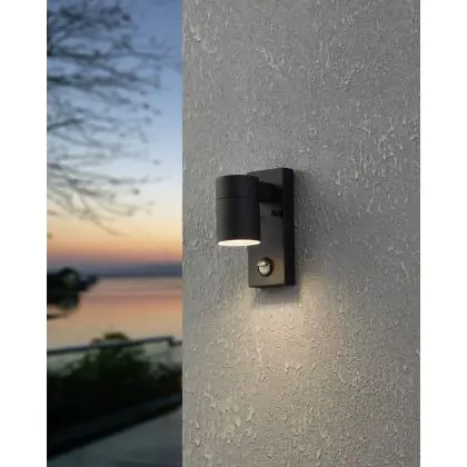 Eglo Applique Murale Riga 5 Acier Noir 2W 250lm - 830 Blanc Chaud | IP44 - Détecteur De Mouvement