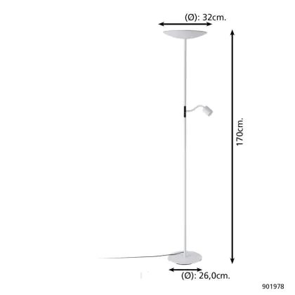 Investissez dans une solution à long terme, de 15000 heures en choisissant le Eglo Lampadaires Salon Conivarino Acier Blanc 30.5W 3150lm - 827 Blanc Très Chaud | Dimmable.