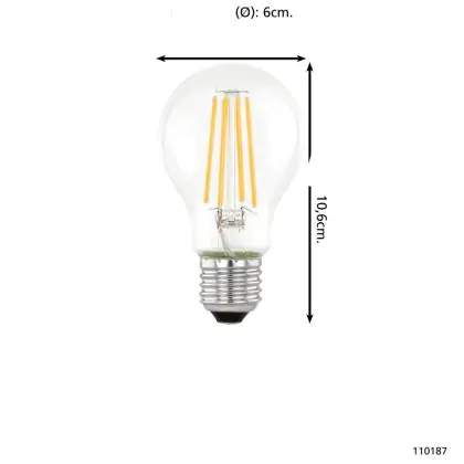 Eglo LED Poire E27 Filament Claire 7.3W 806lm - 830 Blanc Chaud | Équivalent 60W est le produit de remplacement parfait pour votre ancienne ampoule de 60W avec un culot E27 grâce à sa technologie LED. Passer à la LED vous offrira de nombreux avantages !