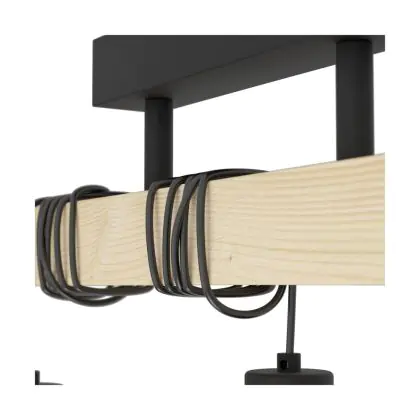 Description Eglo Plafonnier Townshend 5 Acier Bois Noir | IP20 - Convient pour 3x E27