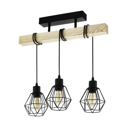 Caractéristiques du Eglo Plafonnier Townshend 5 Acier Bois Noir | IP20 - Convient pour 3x E27