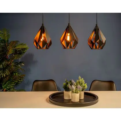 Investissez dans une solution à long terme, de heures en choisissant le Eglo Suspension Luminaire Carlton 5 Acier Noir | IP20 - Convient pour 3x E27 .