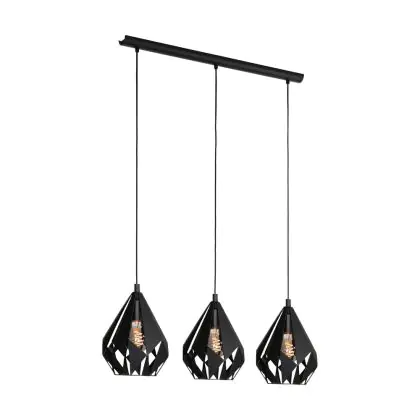 Description Eglo Suspension Luminaire Carlton 5 Acier Noir | IP20 - Convient pour 3x E27