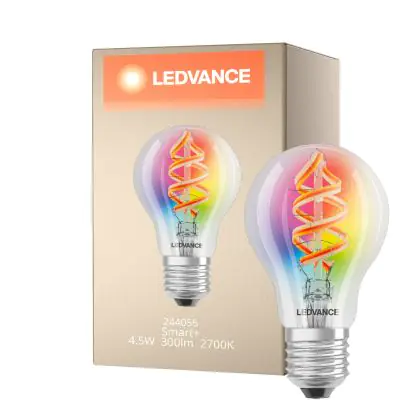 Description Ledvance Smart+ Wifi E27 Poire Classic Filament 4.5W 300lm - 827 Blanc Très Chaud | RGBW - Équivalent 30W