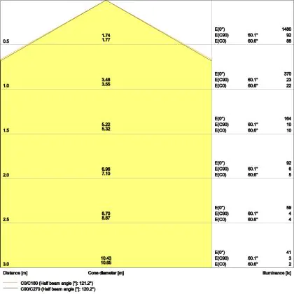 ![]() Le code couleur se compose de l'indice de rendu des couleurs (IRC) et de la température de couleur (Kelvin). Le premier chiffre indique le rendu des couleurs (1 = très mauvais rendu des couleurs, 9 = meilleure authenticité des couleurs). Le deuxième et troisième chiffre indiquent la température de la couleur. Exemple : Le code couleur "830" indique que la lampe a un bon rendu des couleurs (8) et une couleur de lumière blanche chaude (30 = 3000K). |