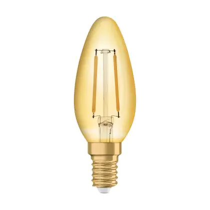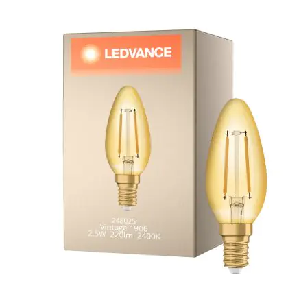 Ledvance Vintage 1906 LED E14 Bougie Dorée 2.5W 220lm - 824 Blanc Très Chaud | Équivalent 25W est le produit de remplacement parfait pour votre ancienne ampoule de 25W avec un culot E14 grâce à sa technologie LED. Passer à la LED vous offrira de nombreux avantages !
