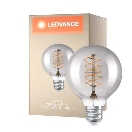 Ledvance Vintage 1906 LED E27 Globe Smoke 7.8W 360lm - 818 Blanc Très Chaud | Dimmable - Équivalent 30W est le produit de remplacement parfait pour votre ancienne ampoule de 30W avec un culot E27 grâce à sa technologie LED. Passer à la LED vous offrira de nombreux avantages !