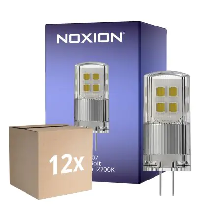 Lot 12x Noxion Bolt LED Capsule G4 2W 200lm - 827 Blanc Très Chaud | Dimmable - Équivalent 21W est le remplacement parfait pour pour vos lampes halogènes traditionnelles G4 de 21W avec un code couleur 827 Blanc Très Chaud. Cette ampoule a une forme Capsule et les capuchons des lampes se situent à 4 mm les uns des autres.