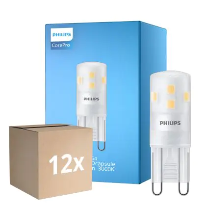 Lot 12x Philips CorePro LED Capsule G9 Dépolie 1.9W 220lm - 830 Blanc Chaud | Équivalent 25W est une ampoule LED G9 Philips qui vous convaincra non seulement par sa puissance particulièrement efficace de 1.9 watts, mais aussi par une longue durée de vie de 15000 heures. Le prix comprend aussi une garantie de 2 ans.