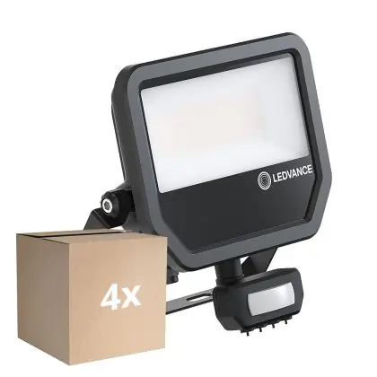 Description Lot 4x Ledvance Projecteur LED Aluminium Noir 41W 5500lm 100D - 830 Blanc Chaud | IP65 - Détecteur de Mouvement et de Lumière - Symétrique