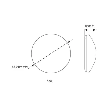 Description Noxion Hublot LED Corido Blanc 18W 1561lm - 840 Blanc Froid | 360mm - IP44 - Éclairage De Secours 1 Heures
