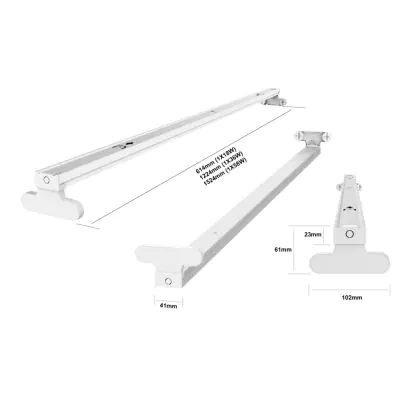 Cette base vous permettra de connecter 2 tubes LED T8 de 18W et de 60cm. Vous pouvez les connecter simplement, en introduisant simplement les extrémités des tubes verticalement et en les faisant pivoter, une fois insérés dans le luminaire.