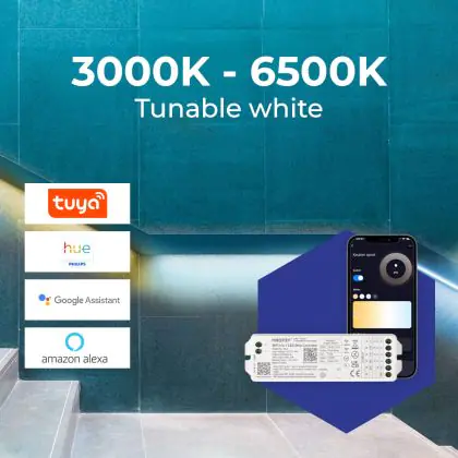 Si vous avez choisi un kit de ruban LED compatible avec Zigbee ou Wi-Fi, la télécommande n'est pas incluse. Cependant, vous pouvez facilement ajouter une télécommande compatible à votre panier. Il vous suffit de vous rendre dans notre catégorie Télécommandes pour ruban LED.