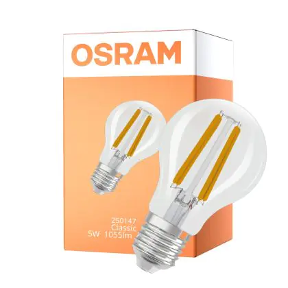 L'ampoule LED E27 Osram ne convainc pas seulement par sa longue durée de vie de 50000, mais aussi par son efficacité lumineuse élevée de lm/W. Le prix d'achat comprend également une garantie globale de 5 ans.
