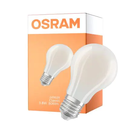 Description Osram Classic LED E27 Poire Filament Dépolie 3.8W 806lm - 840 Blanc Froid | Dimmable - Équivalent 60W