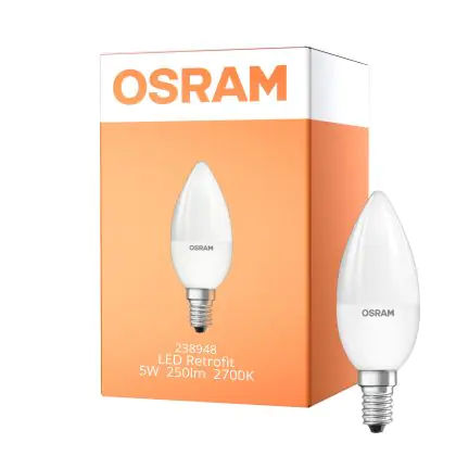 Cette ampoule à Led Retrofit de chez Osram consomme 5W et remplace des ampoules halogènes classiques de 25W. Vous allez donc faire des économies d’énergies et d’argent incroyables grâce à cette lampe Led. Elle diffuse une lumière d’un blanc très chaud appelé aussi 2700k. Cette lampe a une forme bougie B35, un culot à petit vis E14 et fonctionne sur 230 Volts. Vous allez aimer sa longue durée de vie de 25000 heures. Les ampoules halogènes traditionnelles R7s ne durent que 2000 heures.
