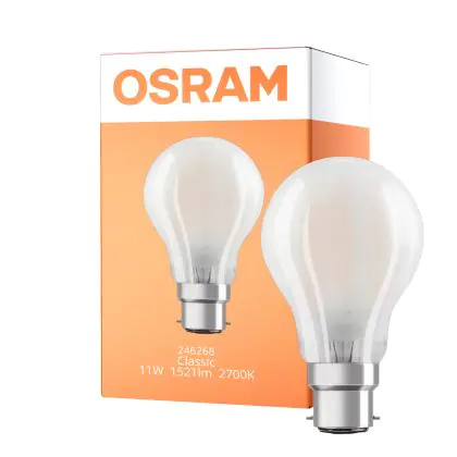 Le Osram Retrofit Classic LED B22d Poire Dépolie 11W 1521lm - 827 Blanc Très Chaud | Dimmable - Équivalent 100W est l'alternative parfaite à vos anciennes ampoules halogènes conventionnelles. Alimentées en 230v (et donc sans transformateur), ces ampoules sont fiables et robustes.