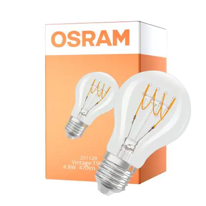 Description Osram Vintage 1906 LED Classic Slim E27 Poire Filament Claire 4.8W 470lm - 827 Blanc Très Chaud | Dimmable - Équivalent 40W