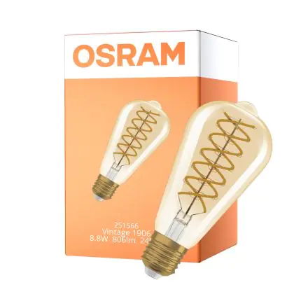 Description Osram Vintage 1906 LED E27 Edison Filament Dorée 8.8W 806lm - 824 Blanc Très Chaud | Dimmable - Équivalent 60W