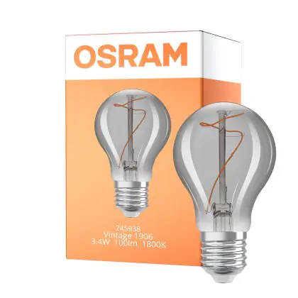 Description Osram Vintage 1906 LED E27 Pear Filament Smokey 3.4W 100lm - 818 Extra Warm White