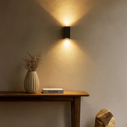 Investissez dans une solution à long terme, de heures en choisissant le Pack duo D'Lite Applique Murale Vrebos Aluminium Noir Up&Down| Convient pour 2x GU10.