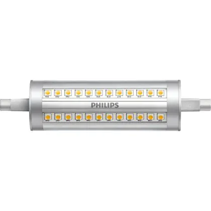 Philips Corepro LED Lineair R7s 118mm 14W 2000lm - 830 Blanc Chaud | Dimmable - Équivalent 120W est le remplacement parfait pour vos lampes halogènes traditionnelles R7s de 120W avec un code couleur 830 Blanc Chaud. Les ampoules LED ne produisent pas de chaleur et n’émettent pas de radiation UV. Passez à la LED vous offrira de nombreux avantages !