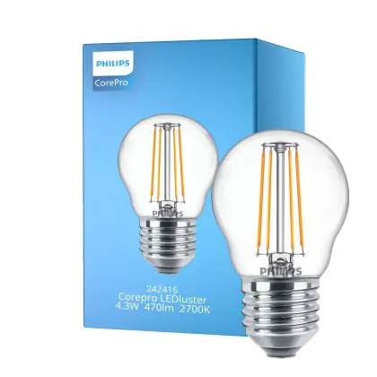 Philips Corepro LED Lustre E27 Boule Filament Claire 4.3W 470lm - 827 Blanc Très Chaud | Équivalent 40W