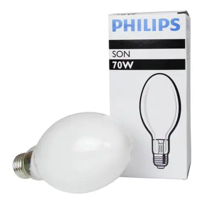 Les ampoules Philips SON sont des lampes à décharge, à vapeur de sodium haute pression. Ce sont les modèles standard économiques. Elles offrent une efficacité lumineuse de 130lm/W grâce à une tube à décharge rempli d'un mélange sodium-mercure et de gaz d'amorçage au xénon.
