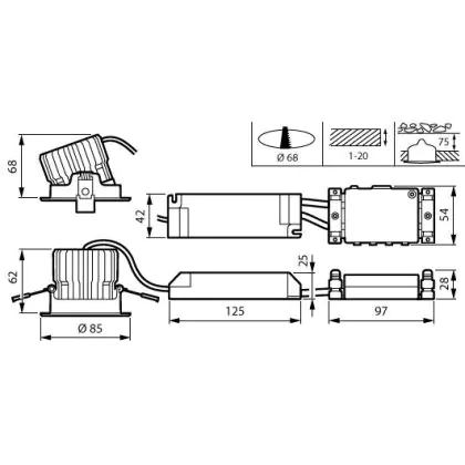 Caractéristiques du Philips Spot LED RS156B CoreLine Aluminium Blanc 12.3W 1300lm 36D - 830 Blanc Chaud | 85mm - Diamètre 68mm - IP20/44 - Dali Dimmable