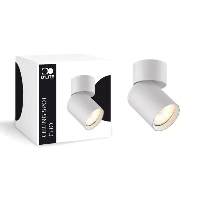 Beschrijving D'Lite Plafond Spot Clio Aluminium Wit Kantelbaar| Geschikt voor 1x GU10