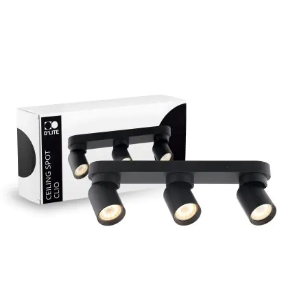 Beschrijving D'Lite Plafond Spot Clio Aluminium Zwart Kantelbaar| Geschikt voor 3x GU10
