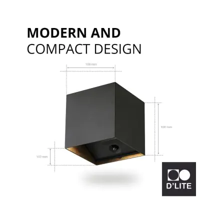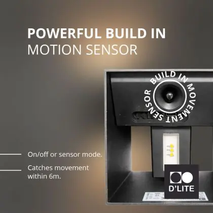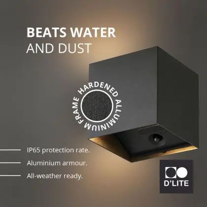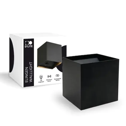Beschrijving Duopak D'Lite Wandlamp Elingen Aluminium Zwart 2.9W 170lm - 830 Warm Wit | IP65 - Werkt Op Batterijen - Lichtsensor