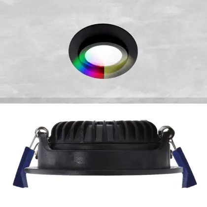 Beschrijving EcoDim Inbouw Spot Zwart 6W 450lm 60D 827- 860 Afstembaar Wit | RGB - 85mm - Zaagmaat 75mm - IP54 - Zigbee Dimbaar