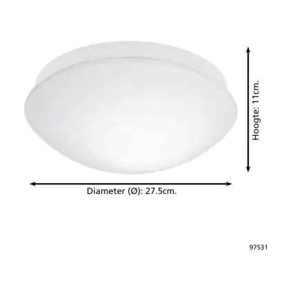 Beschrijving Eglo Plafondlamp Bari-M Wit | IP44 - Bewegings- en Lichtsensor - Geschikt voor 1x E27