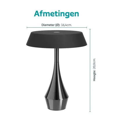Beschrijving Eglo Tafellamp Turcio Staal Zwart 5W 310lm - 825-830-840 CCT | IP44 - Touch Dimbaar - USB-C