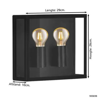 Beschrijving Eglo Wandlamp Alamonte 1 Staal Zwart | IP44 - Geschikt voor 1x E27