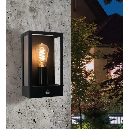 Eglo Wandlamp Alamonte Staal Zwart | IP44 - Geschikt voor 1x E27 - Bewegingssensor