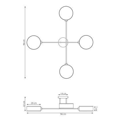 Beschrijving Emibig Plafondlamp Maga Staal Zwart | Geschikt voor 4x E14 - Max 10W