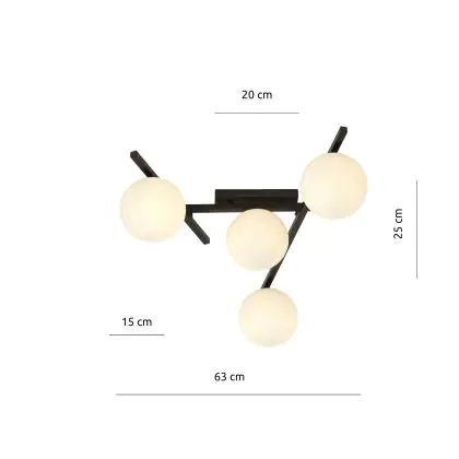 Emibig Plafondlamp Smart Staal Zwart | Geschikt voor 4x E14 - Max 10W