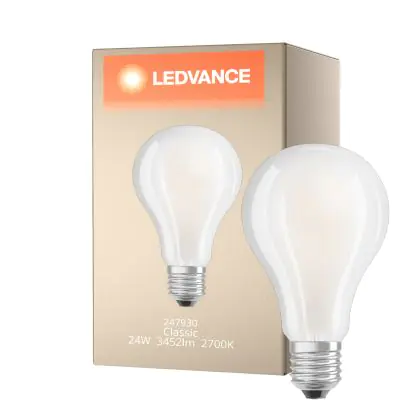 Beschrijving Ledvance Classic LED E27 Peer Filament Mat 24W 3452lm - 827 Zeer Warm Wit | Vervangt 200W