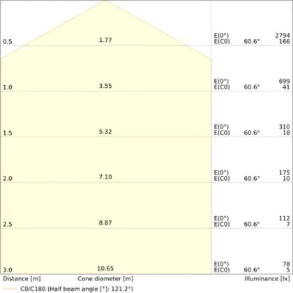 De lichtopbrengst (Lumen), geeft weer hoe krachtig het uitgestraalde licht is. Dit is belangrijk om te weten om de juiste sfeer te creëren. 0 tot 400 Lumen is bij uitstek geschikt voor accent- of sfeerverlichting. Een hoger aantal Lumen is, afhankelijk van de grootte van de ruimte, beter geschikt als ondersteunende- of basisverlichting. Heb je plafonds hoger dan 4 meter, dan is een lichtopbrengst van minimaal 8000lm aan te raden indien heldere verliching gewenst is (vb. in werkomgevingen).