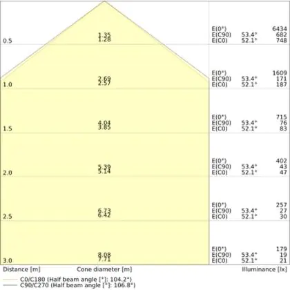 De lichtopbrengst (Lumen), geeft weer hoe krachtig het uitgestraalde licht is. Dit is belangrijk om te weten om de juiste sfeer te creëren. 0 tot 400 Lumen is bij uitstek geschikt voor accent- of sfeerverlichting. Een hoger aantal Lumen is, afhankelijk van de grootte van de ruimte, beter geschikt als ondersteunende- of basisverlichting. Heb je plafonds hoger dan 4 meter, dan is een lichtopbrengst van minimaal 8000lm aan te raden indien heldere verliching gewenst is (vb. in werkomgevingen).