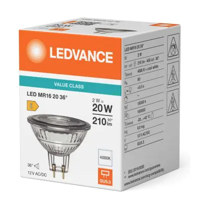 Beschrijving Ledvance LED MR16 P LED Reflector GU5.3 PAR16 2W 210lm 36d - 830 Warm Wit| Vervangt 20w