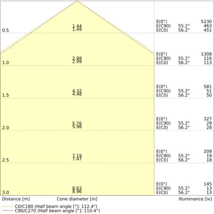 De lichtopbrengst (Lumen), geeft weer hoe krachtig het uitgestraalde licht is. Dit is belangrijk om te weten om de juiste sfeer te creëren. 0 tot 400 Lumen is bij uitstek geschikt voor accent- of sfeerverlichting. Een hoger aantal Lumen is, afhankelijk van de grootte van de ruimte, beter geschikt als ondersteunende- of basisverlichting. Heb je plafonds hoger dan 4 meter, dan is een lichtopbrengst van minimaal 8000lm aan te raden indien heldere verliching gewenst is (vb. in werkomgevingen).