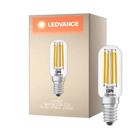 Beschrijving Ledvance Special LED E14 Buis one-handed Filament Helder 4.2W 470lm - 827 Zeer Warm Wit | Vervangt 40W