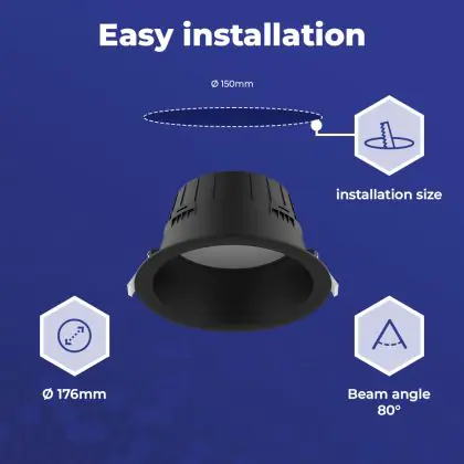 LED downlights kun je vergelijken met een inbouwspot, maar dan met een, over het algemeen, bredere stralingshoek. Downlight armaturen hebben een medium gradenbundel (25 - 40°), die perfect is voor ondersteunende verlichting, of een (zeer) brede gradenbundel (41 - >91°), die gebruikt wordt voor algemene verlichting. Deze 80° LED downlight van kun je in vele werkomgevingen en/of woningen gebruiken.