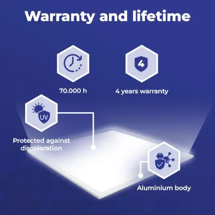 Met de aanschaf van dit LED paneel van 60x60cm maak je in meerdere opzichten een goede keuze. Met een gemiddelde levensduur van 70000 uur ben je verzekerd van een duurzaam product, dat vele jaren optimaal blijft presteren. Bovendien draag je een steentje bij aan een schoner milieu, want LED verlichting vermindert de C02 uitstoot en bevat geen giftige stoffen zoals kwik.