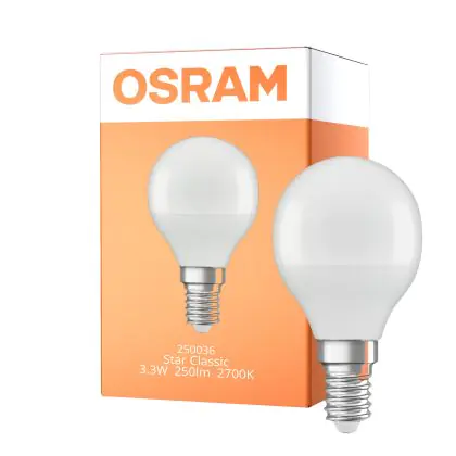Beschrijving Osram LED Star Classic E14 Kogel Mat 3.3W 250lm - 827 Zeer Warm Wit | Vervangt 25W